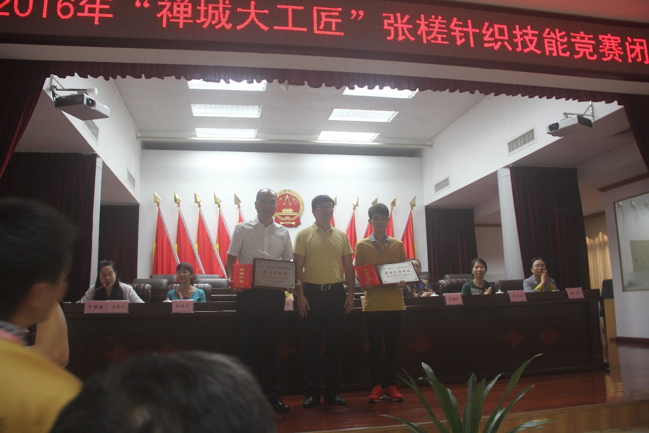 我司董事長蔡景輝先生受邀出席本次大賽的閉幕式,嘉謙紡織榮獲組委會(huì)頒發(fā)的2016年“禪城大工匠”張槎針織技能競賽“突出貢獻(xiàn)獎(jiǎng)”及“優(yōu)秀組織獎(jiǎng)”。