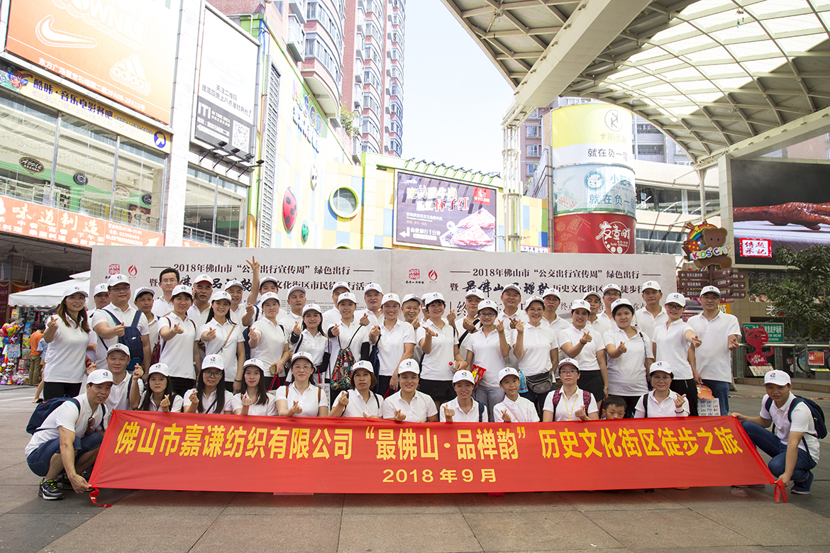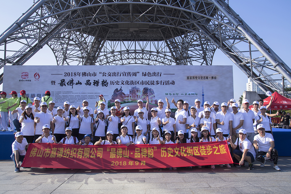 9月15日上午,2018年度佛山市“公交出行宣傳周”綠色出行暨“最佛山·品禪韻”歷史文化街區(qū)市民徒步行活動(dòng)于禪城區(qū)文華公園啟動(dòng),我司嘉謙紡織作為佛山禪城區(qū)政協(xié)委員單位,積極響應(yīng)政府的號(hào)召。在公司董事長(zhǎng)蔡景輝的帶領(lǐng)下,共有50名員工代表踴躍參與了此次綠色徒步行動(dòng),與逾千佛山市民走進(jìn)歷史文化街,徒步六公里,親身感受歷史建筑之美,聆聽(tīng)歷史建筑故事,細(xì)品禪城歷史文化。國(guó)家住建部駐佛山市督察員林有良先生, 廣東省人民政府駐佛山市城鄉(xiāng)規(guī)劃督察員李朝純先生,佛山市交通運(yùn)輸局局長(zhǎng)曾陽(yáng)春先生,佛山市交通運(yùn)輸局副局長(zhǎng)莊儒耀先生、禪城區(qū)政協(xié)委員會(huì)主席殷輝先生、禪城區(qū)委常委梁柱華先生、禪城區(qū)人民政府副區(qū)長(zhǎng)、區(qū)發(fā)展規(guī)劃和統(tǒng)計(jì)局局長(zhǎng)渠錚女士等相關(guān)領(lǐng)導(dǎo)參加了本次活動(dòng)啟動(dòng)儀式。