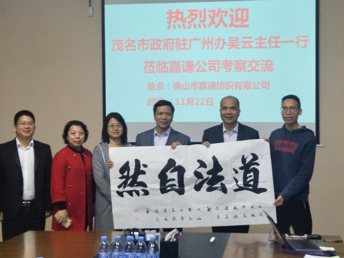 2018年11月22日下午佛山市嘉謙紡織有限公司迎來(lái)了茂名市政府駐廣州辦事處主任吳云一行進(jìn)行考察指導(dǎo)。嘉謙公司董事長(zhǎng)兼廣東省茂名商會(huì)常務(wù)會(huì)長(zhǎng)蔡景輝、財(cái)務(wù)總監(jiān)魏文穗表示熱烈歡迎應(yīng)并接待陪同。
