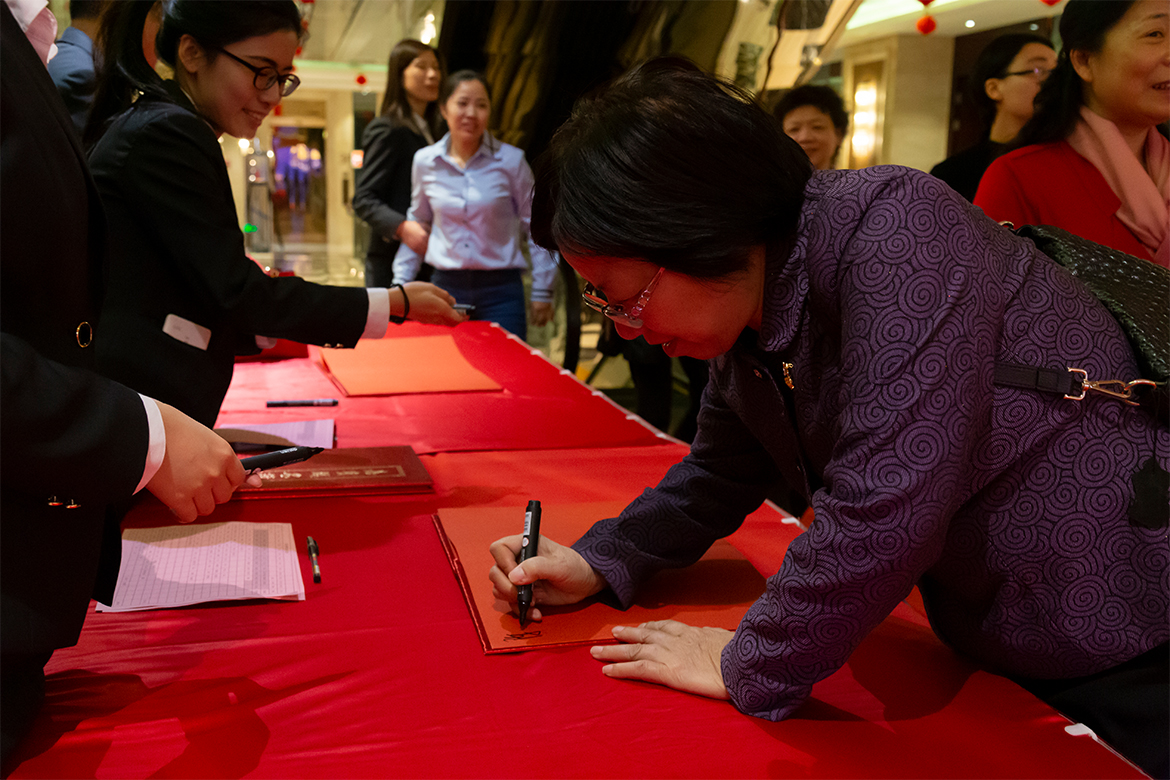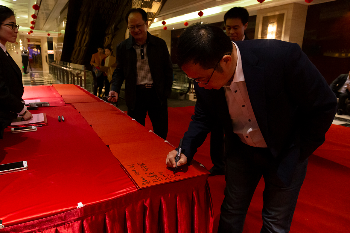 大家簽到入場,走紅毯、簽名留念、自由合影一氣呵成;一張張笑臉,蘊含著不同的故事;每一個故事,承載著嘉謙的記憶。